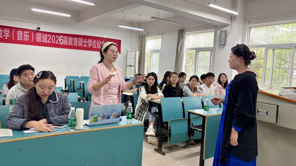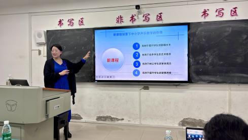 本次声乐专题讲座持续了近三个小时,许娜副教授将音乐理论与实践结合,既剖析高师声乐教学与中小学教育的衔接痛点,又提供可落地的解决方案。在场的研究生表示他们不仅更新了对中小学声乐教育的认知,更掌握了节目编排与教学实践的具体方法。